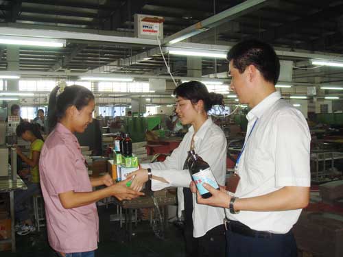 Since the late June, there has been continued high temperature in our city. Such condition brings severe test to the first line workers. In order to do hard work on heat control, strengthen tutelage of trade union labors, arouse the enthusiasim of the employees, ensure the health of vast employees and producing safety under high temperature, Guangbo Group trade union and league actively plan high-temperature caring activities, preparing materials. On July 4, they give condolence to the first line employees of printing workshop, stationery workshop, plastic rubber workshop and album workshop.