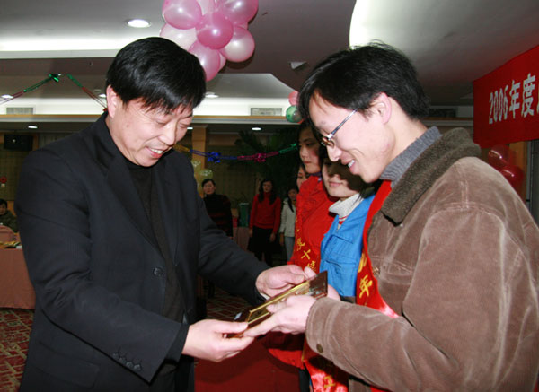 With the resounding melody, company leaders award prizes to non-local employees who made outstanding contribution in their own posts. Secretary Zhu encourages all employees to work hard in 2007, making greater achievements. Meanwhile, he also encourages emploees to put forward opinions and suggestions.