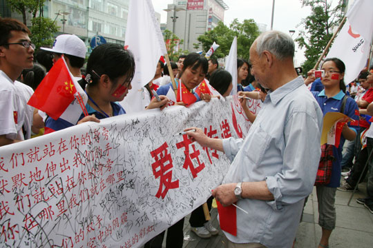 Pay attention to the Olympics, care about the disaster areas. With the continuous passing of Olympic torch, there must be more and more people just like Guangbo people put into the action of supporting Olympics and disaster areas. We have reason to believe, firmness and courage must let Chinese people conquer all disasters, sucessfully holding 2008 Olympic Games.