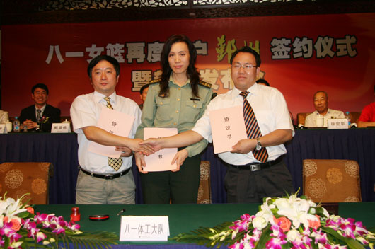 On the afternoon of September 24th, the three parties signed the second three-year agreement in YInzhou. According to the agreement signed by both sides, since October 1, 1008 to September 30, 2011, Pla sports team will transfer PLA Women Bsaketball Team's naming right and fashion advertising right to Zhejiang Guangbo Group with compensation. Meanwhile, to inspire PLA Guangbo Women Bsaketball Team defend the title of general champion, Guangbo Group specially set up 10,000 yuan as the bonus of winning championship. This means, in the following three seasons, PLA Women Bsaketball Team will continue to crusage for WCBA league matches with the name of PLA Guangbo Stationery Women Bsaketball Team, and Yinzhou as the home field.
