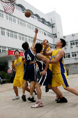 At half-time, printing team a 10-point lead brought the game to the second half. Facing the 10 points difference, industrial corporation team defended strongly, went ahead steadily and surely and nipped the score tightly. Steals, rebounds, fast break and snatch, the game was in full swing. Players on the field were wet through, audience's shouts off the field made it impossible to hear.