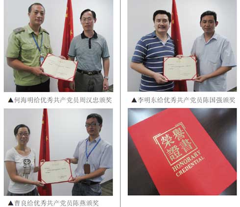 The advanced Party Branch is that of Import and Export Company. Excellent communist party members are Wang Shuangwei from the Party branch of Import and Export Company, Chen Yan from the Party branch of Digital Company, Zhou Hanzhong from the Party branch of Administrative Center, Zhao Dengyong, from the Party branch of Nano Company, Zhou Wei from the Party branch of Industrial Company, Chen Guoqiang from the Party branch of printing sub plant and Wang Song from the Party branch of planning centre.
