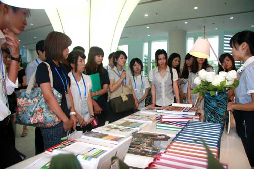 Guangbo Group became the first stop for enterprise class students of this activity. On August 6, accompanied by relevant leaders of Yinzhou district, teachers and students of enterprise class had on-the-spot study in Guangbo workshops, sample center and so on. Watched Guangbo Group image, had a detailed understanding of Guangbo's developing history, main business and the direction for future development in detail. At the forum, according to their own research subject, students had an in-depth discussion and communication with Guangbo Group on aspects like industry cluster, sino-Japanese enterprise comparative advantage and characteristics of employees after 90s.