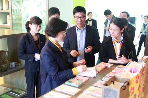 Secretary Zhou visited the comprehensive exhibition hall and stationery exhibition hall, and held a symposium at the lecture hall on the first floor. At the symposium, manager Wang introduced the company’s development situation in recent years and future development plan, company young worker’s working and living conditions, income level and the work development situation of communist youth league.