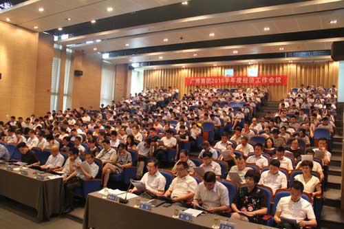 On July 15, Guangbo Group held 2016 semi-annual economic work conference. The meeting summed up the completion of work in the first half of the year. Analyzed the current situation, and deployed key work in the second half of the year. Asked all Group to go all out to fulfill the requirements of the full year target task. Group leaders, middle management cadres, business backbone, party representatives, representatives of the advanced workers and old staff representatives, about 300 people attended this meeting. Group general manager Wang Junping gave semi-annual report on the operation of enterprise. President Wang Liping put forward clear requirements of the work in the second half of the year. CEO Shu Yaoping hosted the meeting.