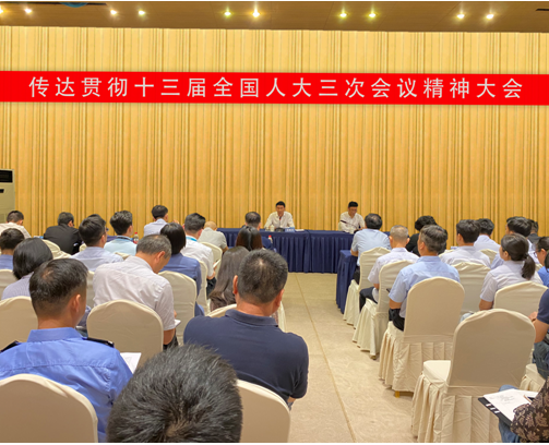 Wang Liping conveyed the spirit of general secretary Xi Jinping's important speech during the deliberations of the delegations and the main agenda of the three session of the thirteenth National People's Congress. He pointed out that the third session of the National People's Congress is a meeting of special significance held at the special time point of national epidemic prevention and return to work. The Congress demonstrated the confidence and advantages of the socialist system with Chinese characteristics, and embodied the institutional essence of people first.
