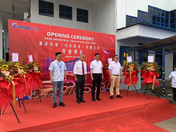 On March 28th, Guangbo Group held a grand ribbon cutting ceremony at its new factory in Penang, Malaysia, marking the official opening of the group's third overseas production base. General Manager Wang Junping personally attended the ribbon cutting ceremony and delivered a speech.