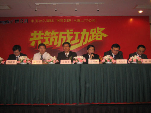 同时,由广博集团自发组织的以“实力广博,共筑成功路”为主题的广博国内市场营销战略会议论坛于9月20日下午3:00——5:30在上海明城大酒店成功举行。广博集团多位高层领导参加了该论坛,会上,广博集团公司副总经理王君平就“广博文具国内市场销售战略、策略及计划分享”做以重要讲话。会议气氛热烈,取得了良好的成效。