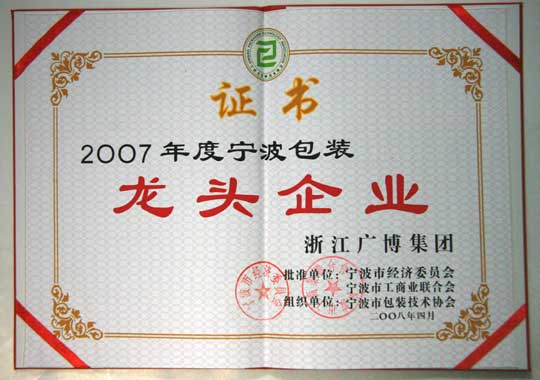 日前,宁波市包装技术协会向广博颁发了“2007年度宁波包装龙头企业”的证书和奖牌。 据了解,此奖是在企业积极申报的基础上,根据甬包协[2008]02号文件精神,经市包协常务理事会议审定,并报市经济委员会、市工商业联合会核准评比出来的。 创新是广博持续发展的原动力。广博通过产品自主开发和 强大的创新设计能力,全面提升了广博品牌全球化最核心的竞争力,为广博文具的全球化营销和打造中国文具领域的第一品牌提供了坚实的技术支持和持久的保障。