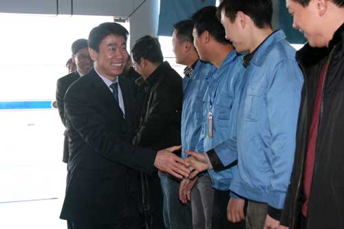 “新年好,新年好。”一大早,集团董事长王利平、总经理王君平等高层领导首先来到行政后勤,给第一天上班的员工拜年。随后,王利平董事长一行来到车间一线,只见车间内机器轰鸣,所有设备全面开足马力忙生产,工人们忙活不停,公司领导分外高兴,与正在热火朝天工作中的广大一线员工亲切握手,送去新春的问候和祝福,同时感谢大家做出的努力,鼓励大家继续做出成绩。使大家深受感动和鼓舞,纷纷表示会以更加饱满的热情和务实的作风,力争各项工作再上新台阶。
