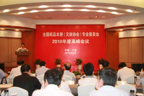 中国纸品文具业的盛会——中国文体用品协会纸品本册委员会2010年高峰会议, 8月28日在宁波召开,中国文教体育用品协会主任单位广博集团承办并主持起草了《中国纸品文具行业十二五规划》和《纸品文具环保倡议书》。