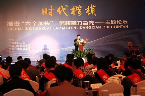 劳模是时代的楷模,也是各行各业的职场标杆。4月15日下午,宁波市首个劳模主题论坛在南苑饭店举行。200余位各行各业的劳模代表,聚集一堂,畅谈了他们的工作体会和远景设想,市政协副主席、市总工会主席胡建岳出席并致辞。