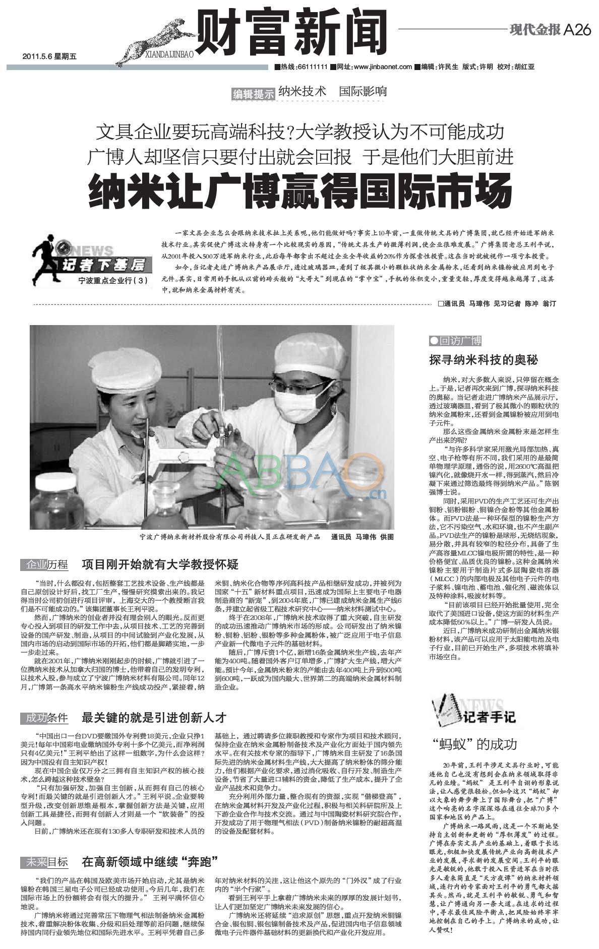 5月6日《现代金报》A26版刊登了广博集团寻求企业转型升级的文章。