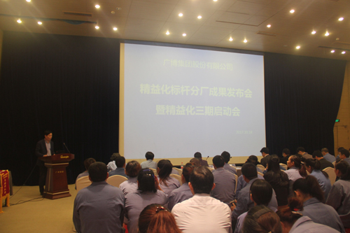10月18日下午,股份公司在报告厅举行精益化第二期标杆分厂成果发布会暨精益化第三期启动会。公司总经理王君平、副总经理戴国平、实业公司总经理姜珠国等领导出席会议,各分厂、部门主管、基层管理人员及班组长120余人参加了此次发布会,会议由戴国平主持。
