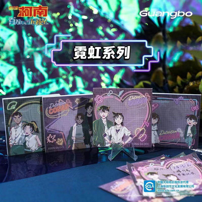 今年以来,广博已陆续开发1000多个种类的文创周边,不仅包括造型萌趣、功能性强的文创文具,还囊括徽章、立牌、痛包等一系列二次元轻周边。“双11”前夕,广博拿下《名侦探柯南》大电影《百万美元的五棱星》独家图档——“霓虹系列”,绝美柄图搭配多款产品已经上线,值得加购!除此之外,“初音未来”、“天官赐福”、“魔道祖师”等顶流IP也被广博收入囊中,相关周边产品持续上新,为店铺强势引流。