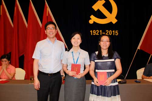 会上,6名预备党员胸佩党章,举起右手,面对鲜红的党旗进行了入党宣誓,紧接着,大会对4名优秀共产党员和2名优秀党干进行了表彰;随后,王君平总经理在大会上作了重要讲话。