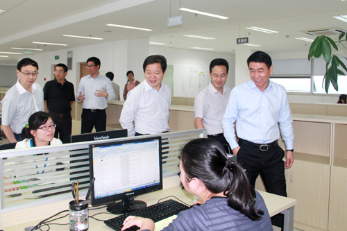 座谈会前,陈仲朝副市长一行考察了广博集团新上线的跨境电商平台——环球淘,详细询问了平台目前运营情况及发展形势,特别是对平台运行的商业模式着重进行了梳理了解。