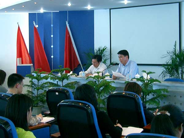 今天下午,在集团办公大楼六楼多功能厅,为进出口公司员工赴广州参加第99届中国出口商品交易会,即2006年春季广交会举行了一场临行动员大会。