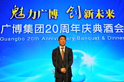 In this golden autumn of October, the fragrance of laurel blossoms was wafted through the fresh air. On the evening of October 27, the 20th anniversary of Guangbo Group's founding celebration reception was grandly held in Shangri-La Hotel. Relevant leaders of national light industry federation, guests at home and abroad, altogether about 600 people attended it. Leaders of Ningbo city, Quzhou city and Suqian city gave the speech or sent congratulatory messages to warmly celebrate the 20th anniversary of the founding of Guangbo. General manager Wang Junping delivered the welcome speech.