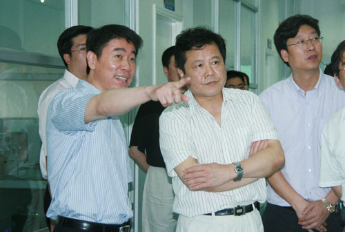 来自全国各地的经销商在印有“同心创未来”的大幅喷绘上签名留念 经销商们在广博综合展厅参观 6月27日上午,伴随着激昂的音乐...